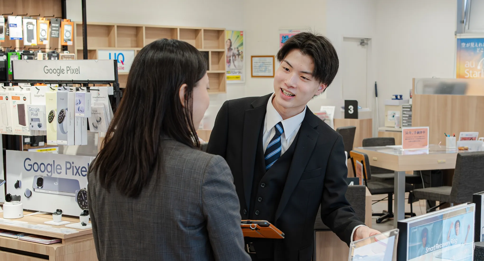 通信以外にも色々見ていましたが、販売職の中でも“人と話す仕事”が向いているのではと思い、最終的に通信業界に絞りました。